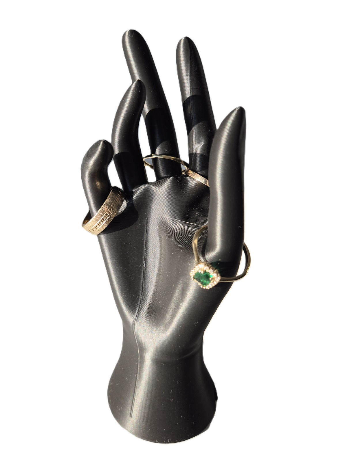 Stand pentru bijuterii sub formă de mână, printat 3D din PLA.