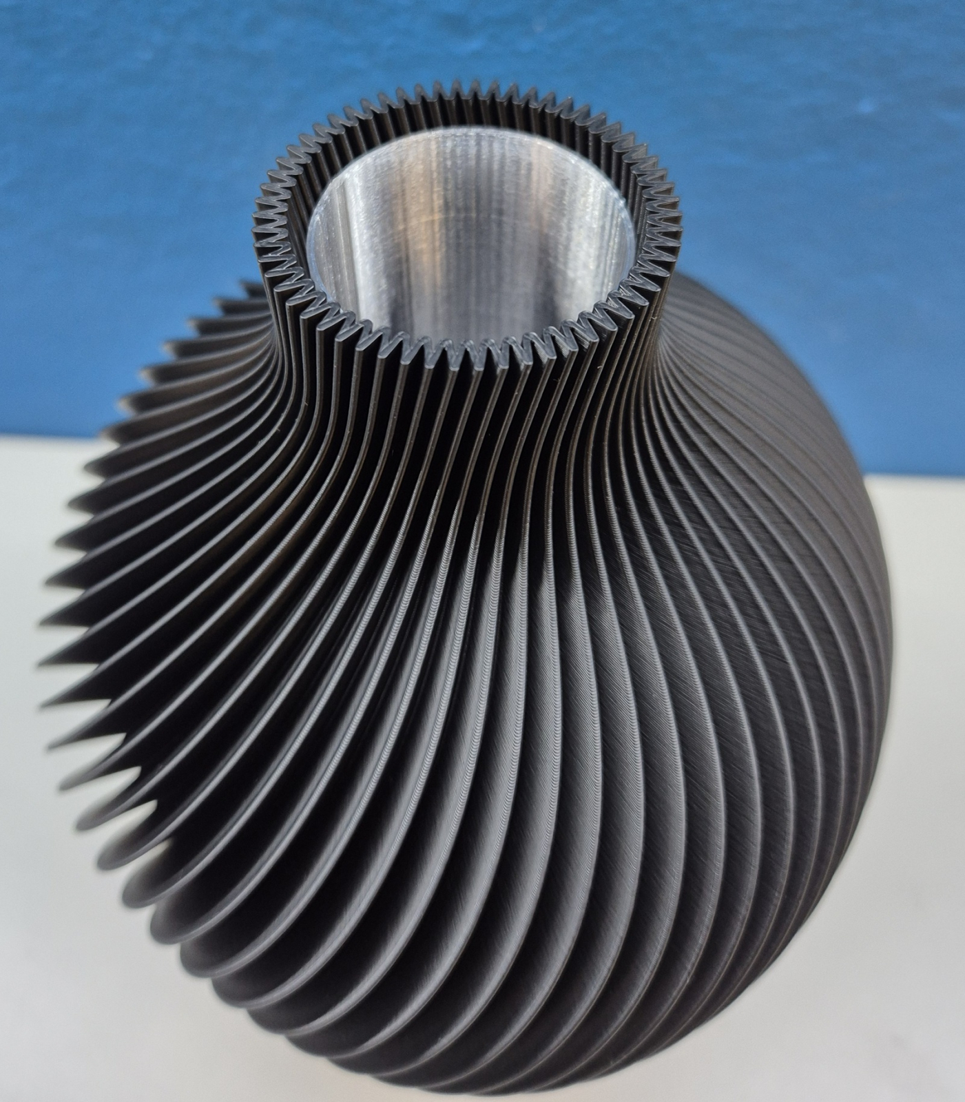 Vaza imprimată 3D este o capodoperă sculpturală, o fuziune între tehnologie de ultimă oră și artă atemporală. Curbele sinuoase și zăbrelele complicate creează un joc fascinant de lumini și umbre, ca și cum ar fi înghețat în mișcare. Imprimată din PLA de culoare mată de înaltă calitate, suprafața are o netezime catifelată care invită la atingere, în timp ce striațiile delicate din procesul de stratificare aditivă șoptesc povestea creării sale.Este realizată din material biodegradabil si ecologic PLA, acesta este un poliester produs din resurse regenerabile, cum ar fi porumbul sau trestia de zahăr. Vaza nu trebuie expusă la lumina directă a soarelui sau la temperaturi care depășesc 48 de grade Celsius. Prin urmare, recomandăm utilizarea în interior. Este recomandată pentru flori uscate, immortelle sau artificiale, pentru flori naturale care necesită apă folosiți inserția tubulara cu care vine in colet.